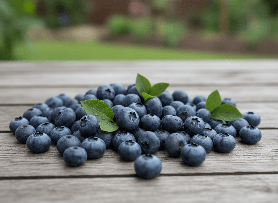 Fresh, plump blueberries harvested at peak ripeness.